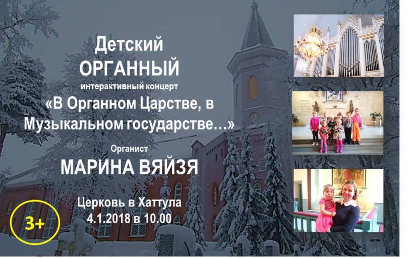 «В Органном Царстве, в Музыкальном государстве…» Адрес: Kirkkotie 29, 13880 Hattula ВХОД СВОБОДНЫЙ |